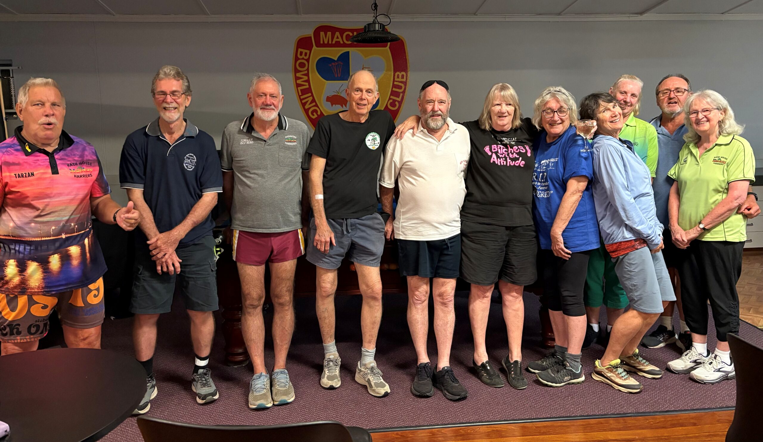 Hashers out of the woodwork…30-32 past and present Hashers convened in anticipation of AGPU at the Mackay Bowls Club.