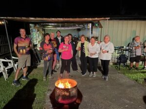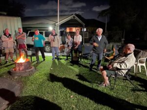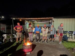 The circle was called, and we were given an education on unknown animal facts by our illustrious monk, Smut. Charges were issued for returning hashers, misdemeanors, birthdays and visiting hashers, with a fine array of hash songs conducted by our song master, Tarzan. Jokes were told by those who can still remember, followed by the important business, and the circle ended with our Mackay hash song.